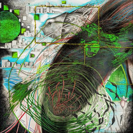 Read more: Fathers House. Acrylic pencil oil pastel ink on paper. 80x80 cm. 2025